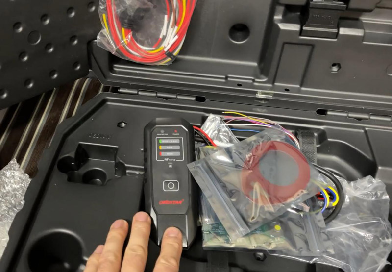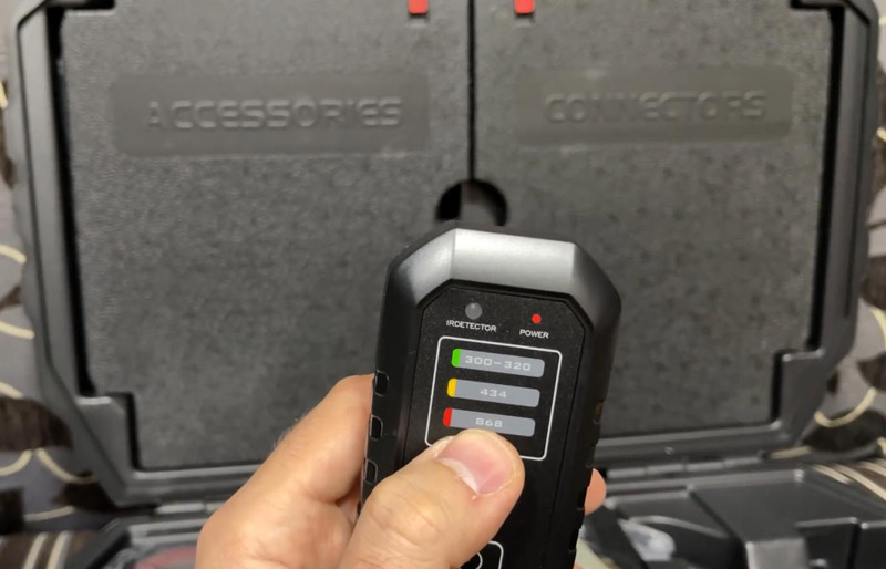 So let’s open the OBDSTAR box. We get the coil, so this is for checking the ignition lock. What else is this, we have a frequency tester. Here we get 868,434 and from 300-320, and this implies if there are 315 and 302 frequencies, but I can say that this is not enough because now Ford’s got a 902 frequency.