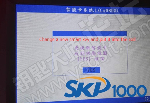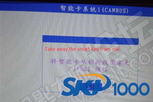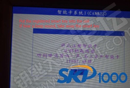 SKP1000 car key programmer prompt to put a registered smart key into coil, remove smart key when hear beep sound